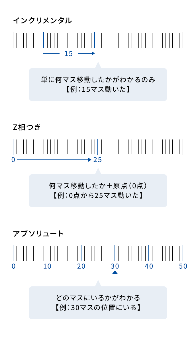 基準となる位置(原点)からの距離情報を取得可能。移動距離だけでなく、「位置」も検出。