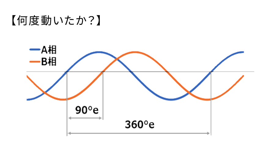 信号(周期)をカウントすることで角度の検知が可能。例えば500周期動作したとすると360°÷500周期=0.72°となります。【アプリケーション例】