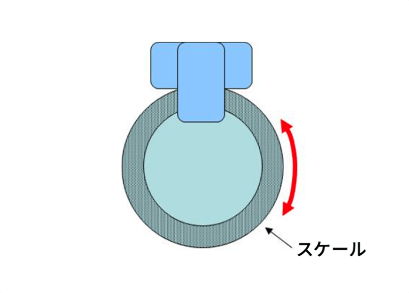 LEDが発光する光をスケールに反射させ、その反射光を*受光素子(Photo diode array)が受光します。